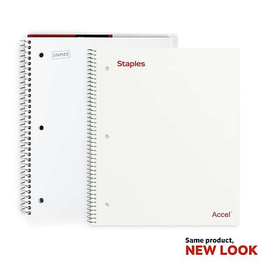 Staples Accel 5Subject Notebook, 8.5" x 11", College Ruled, 200 Sheets Staples Accel Notebook This 8.5w x 11h notebook has 100 sheets. the staples accel durable poly cover notebook in teal color measures 8 1/2 x 11. this staples accel notebook protects pages with a poly cover and provides an. Staples Accel Notebook.